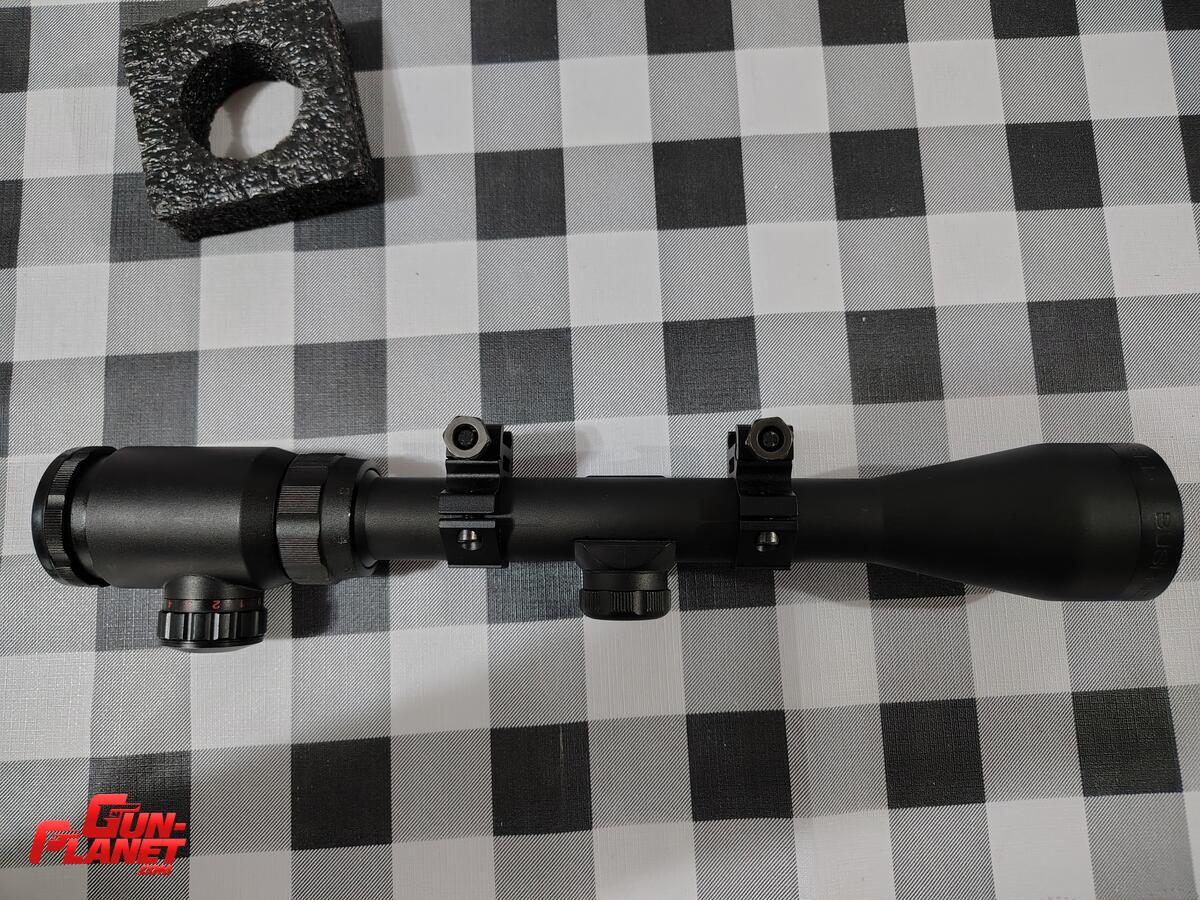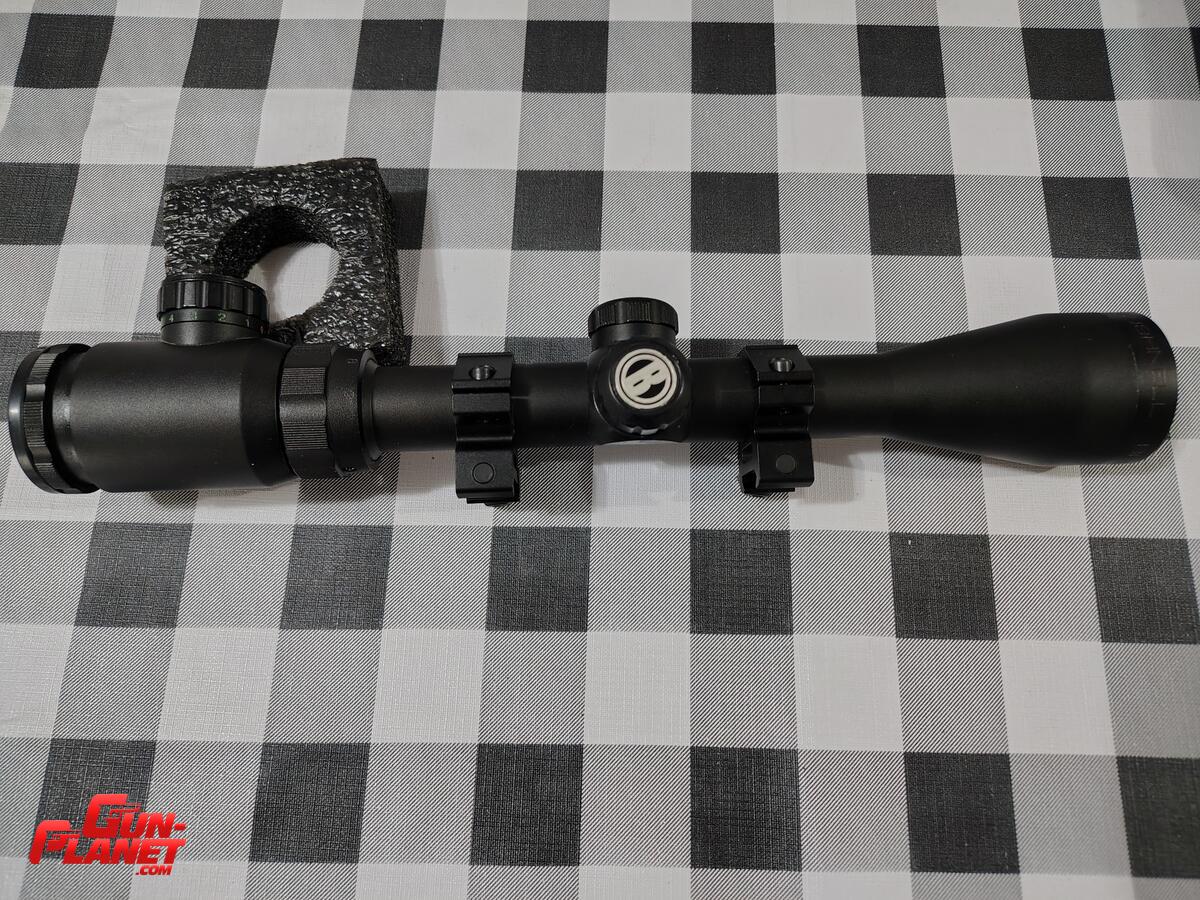 Mira telescópica Bushnell de 3 a 9 x 40, tubo de 24mm, retículo cruz central iluminado en rojo o verde, en buen estado, se incluyen las anillas que se observan …