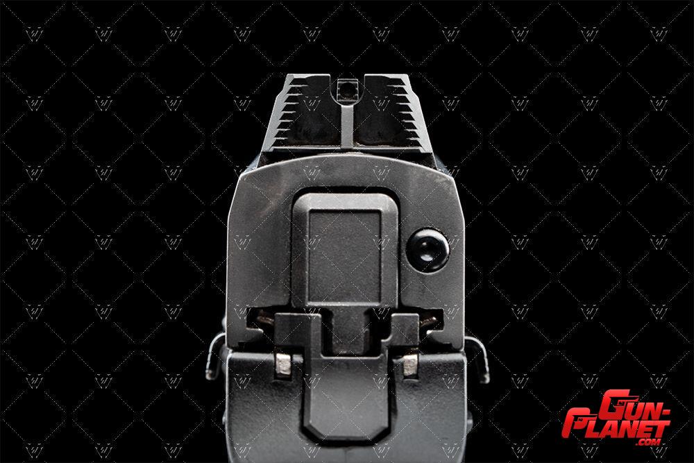 Pequeña “rampa” en la parte trasera de la mira trasera para crear la ilusión de una línea para una asistencia de puntería rápida
