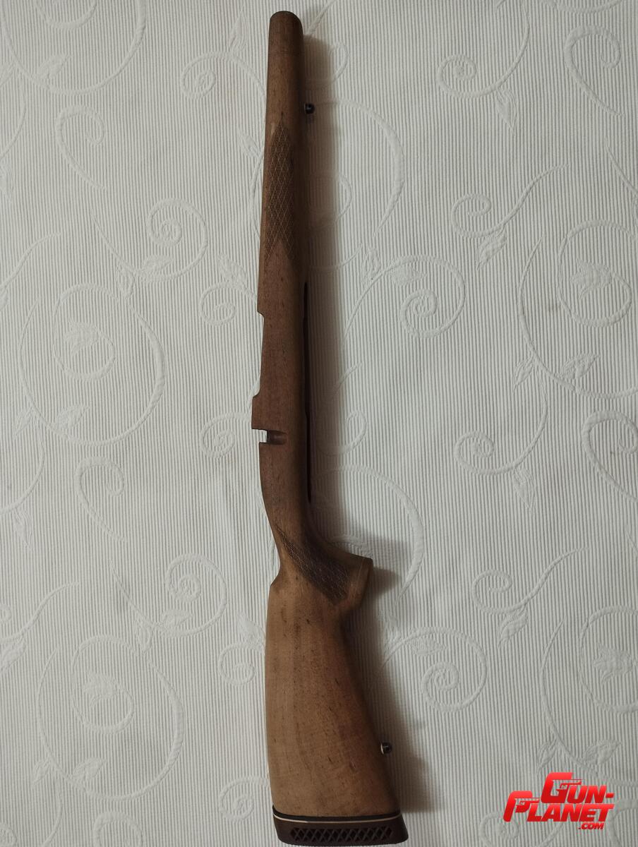 Culata para Mauser 1909 , madera , sin pulir le faltan detalles de pulido y acabado, cama preparada para bull -barrel, Cantonera de goma y soportes porta correa.