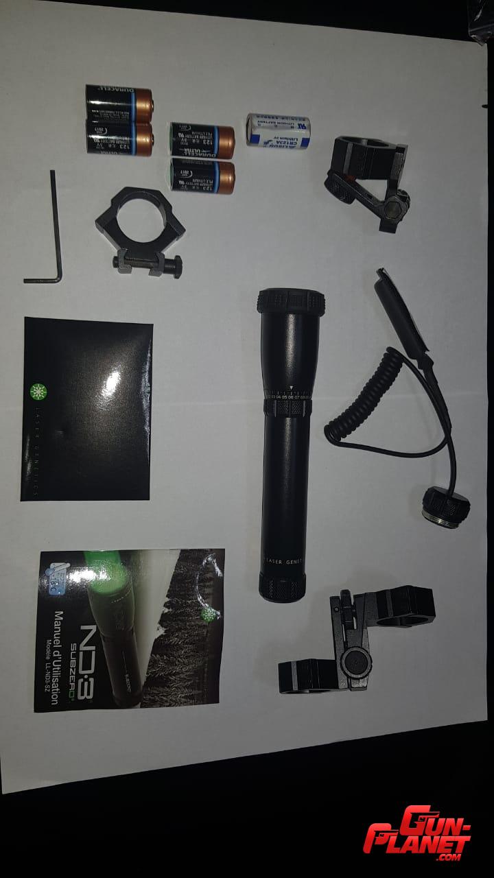 Incluye montaje para acoplar a mira de 30 mm de tubo. Montaje Weaver. Montaje para prismatico.Switch para encendido a distancia y estuche