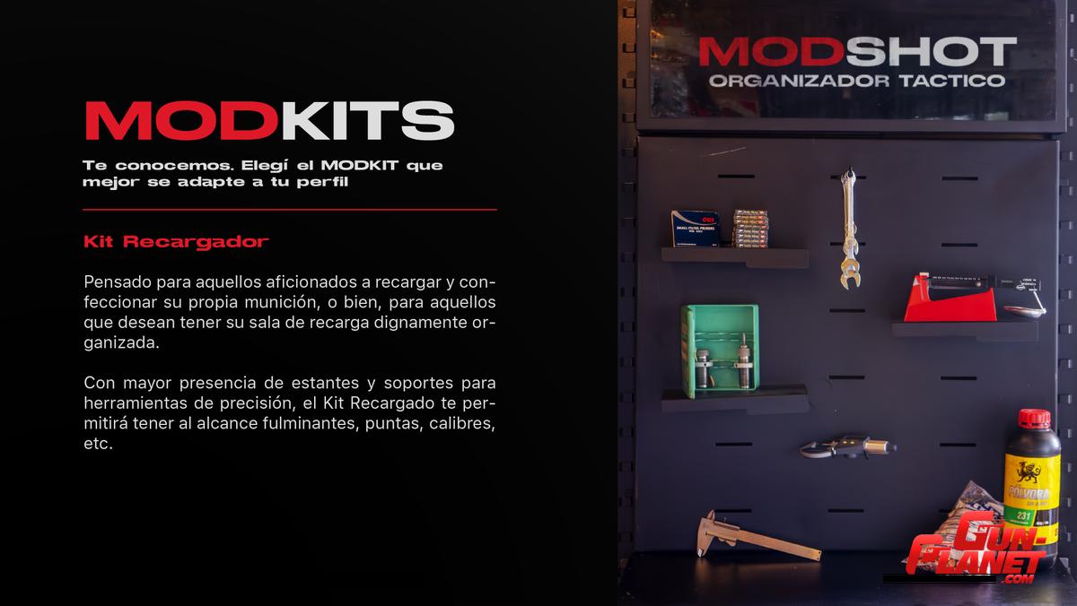 Con mavor presencia de estantes y soportes para herramientas de precisión, el Kit Recargado te permitirá tener al alcance fulminantes, puntas, calibres, etc.