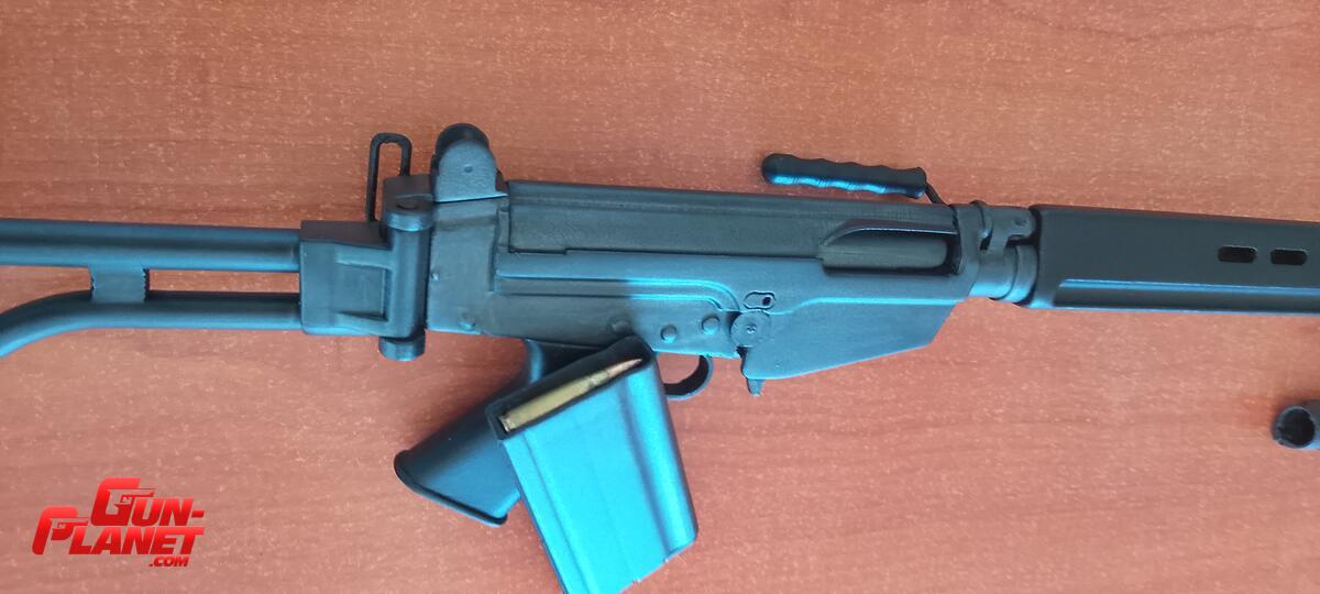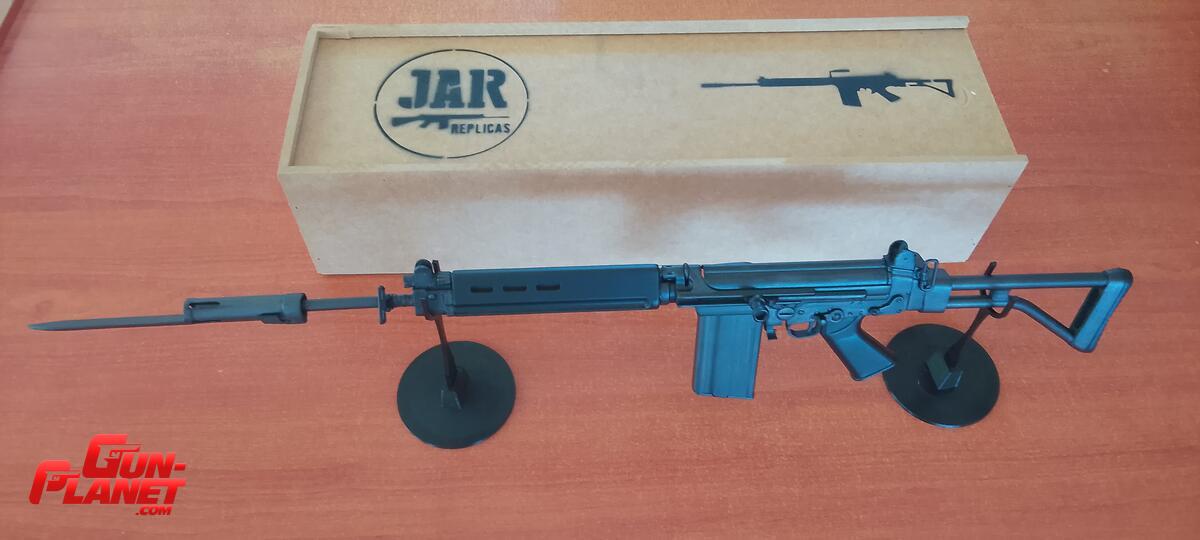 Detallada replica Fal para..esc 1/2. culata rebatible, cargador desmontable, bay. tubular. cerrojo con movimiento. en caja de madera. …