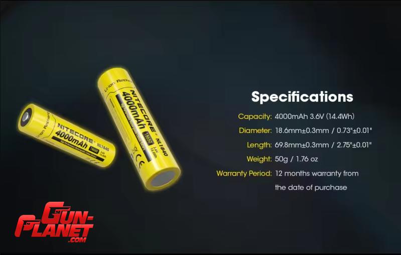 2 Baterías recargable Nitecore NL1840 18650 3,6V Li-ion 4000mAh Salida 10A
